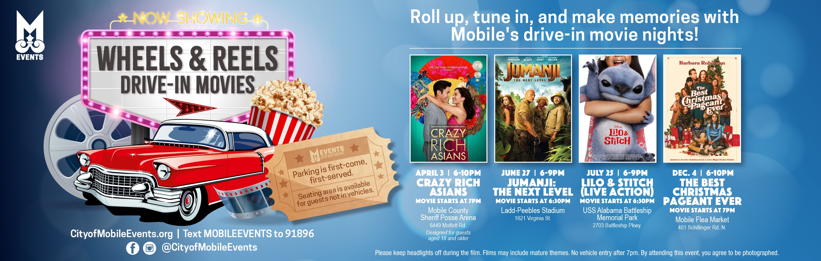 Roll up, tune in, and make memories with Mobile's drive-in movie nights!Join us for a free outdoor movies series that brings the classic