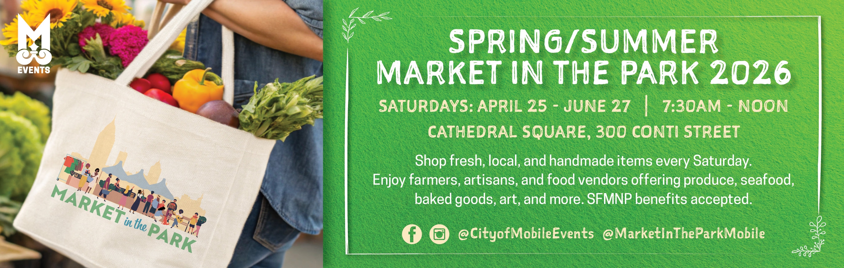 Shop fresh, local, and handmade items every Saturday from April 25 through June 27 at Market in the Park! Farmers, artisans, and food vendors will