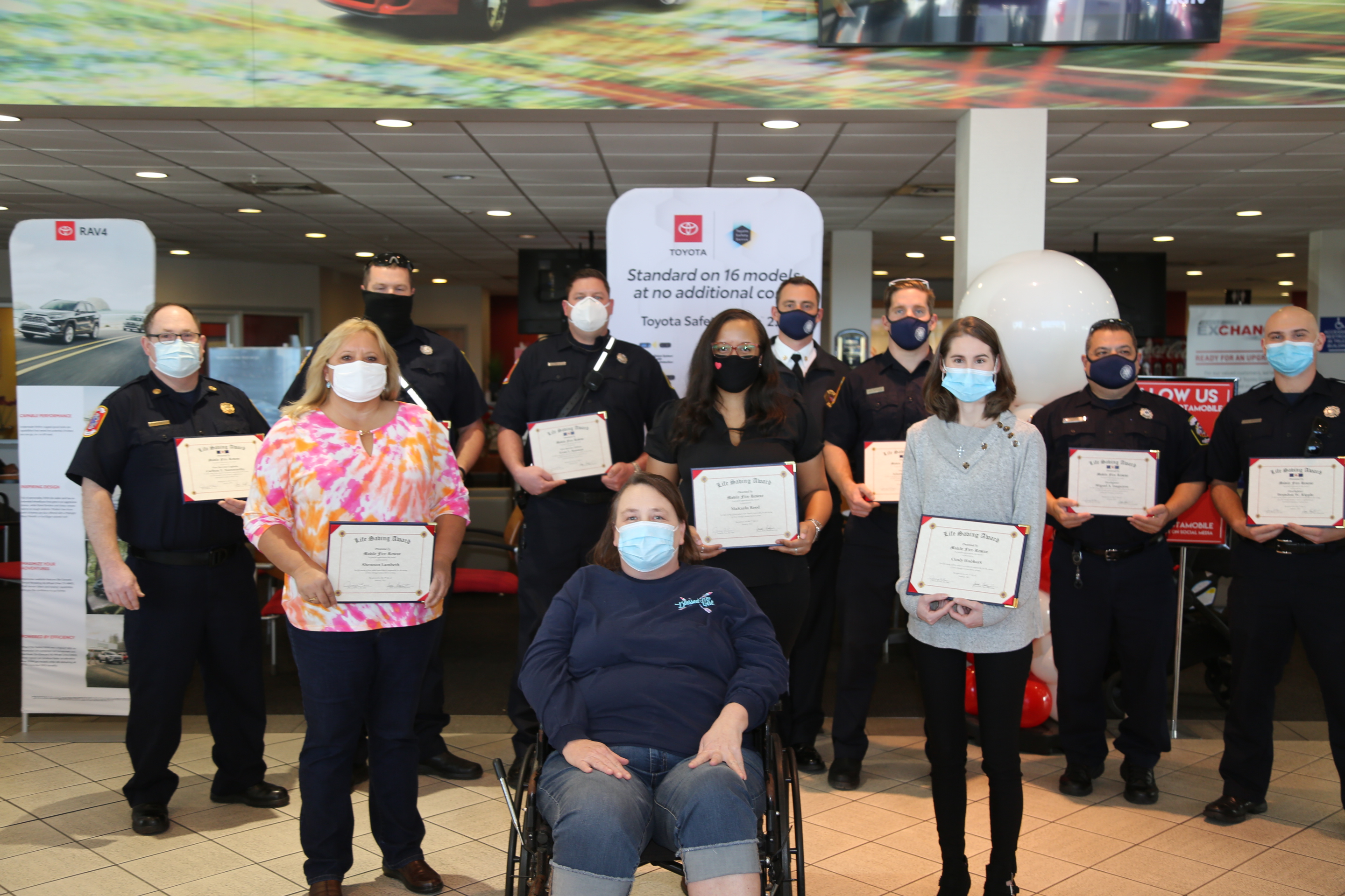 Three good-natured bystanders witnessed the arrest and jumped to action, beginning chest compressions, locating and applying a nearby auto external defibrillator (AED), and calling 911 for emergency help. MFRD would learn later that the 3 women who swooped in to save the day are all nurses who were off-duty, did not know each other, and were all in Springhill Toyota for separate, unrelated reasons.