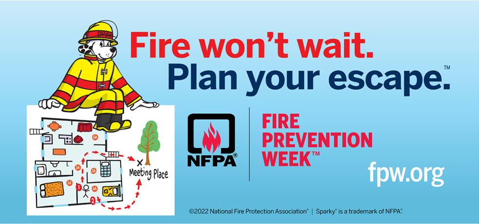 The Mobile Fire-Rescue Department is teaming up with the National Fire Protection Association® (NFPA®)—to celebrate the 100th anniversary of Fire Prevention Week TM (FPW), October 9-15, 2022. This year’s FPW campaign, “Fire won’t wait. Plan your escape TM”, works to educate everyone about simple but important actions they can take to keep themselves and those around them safe from home fires.