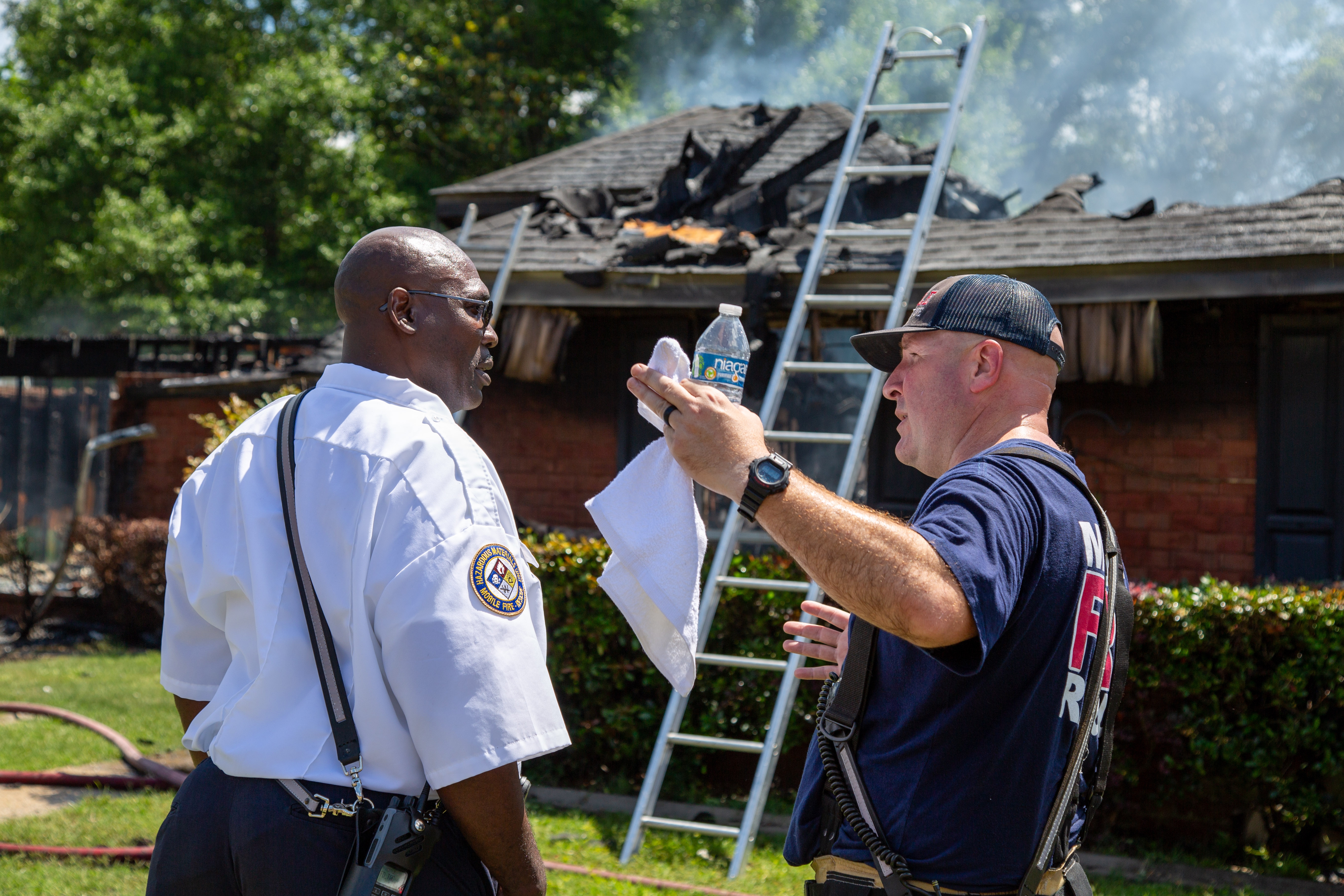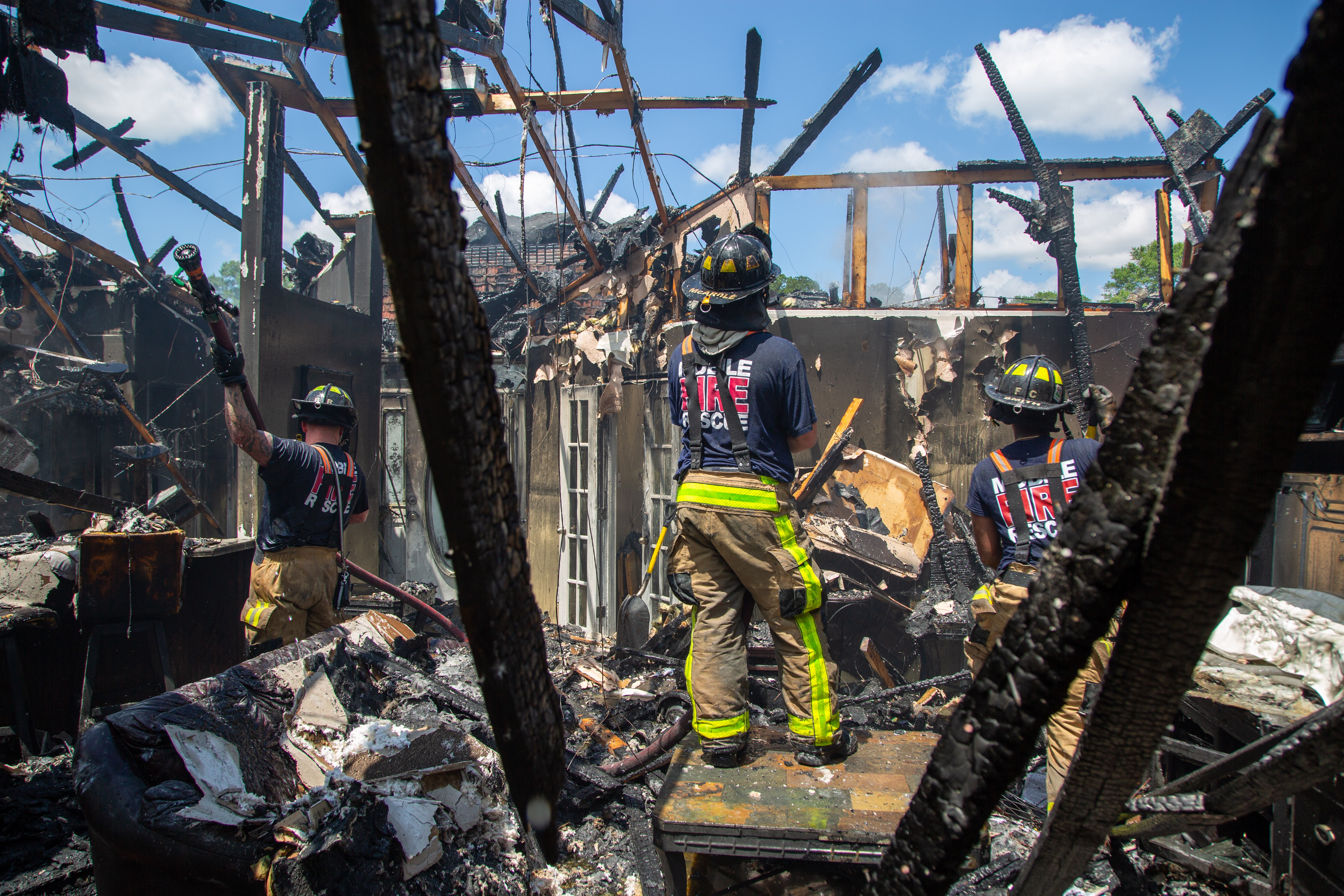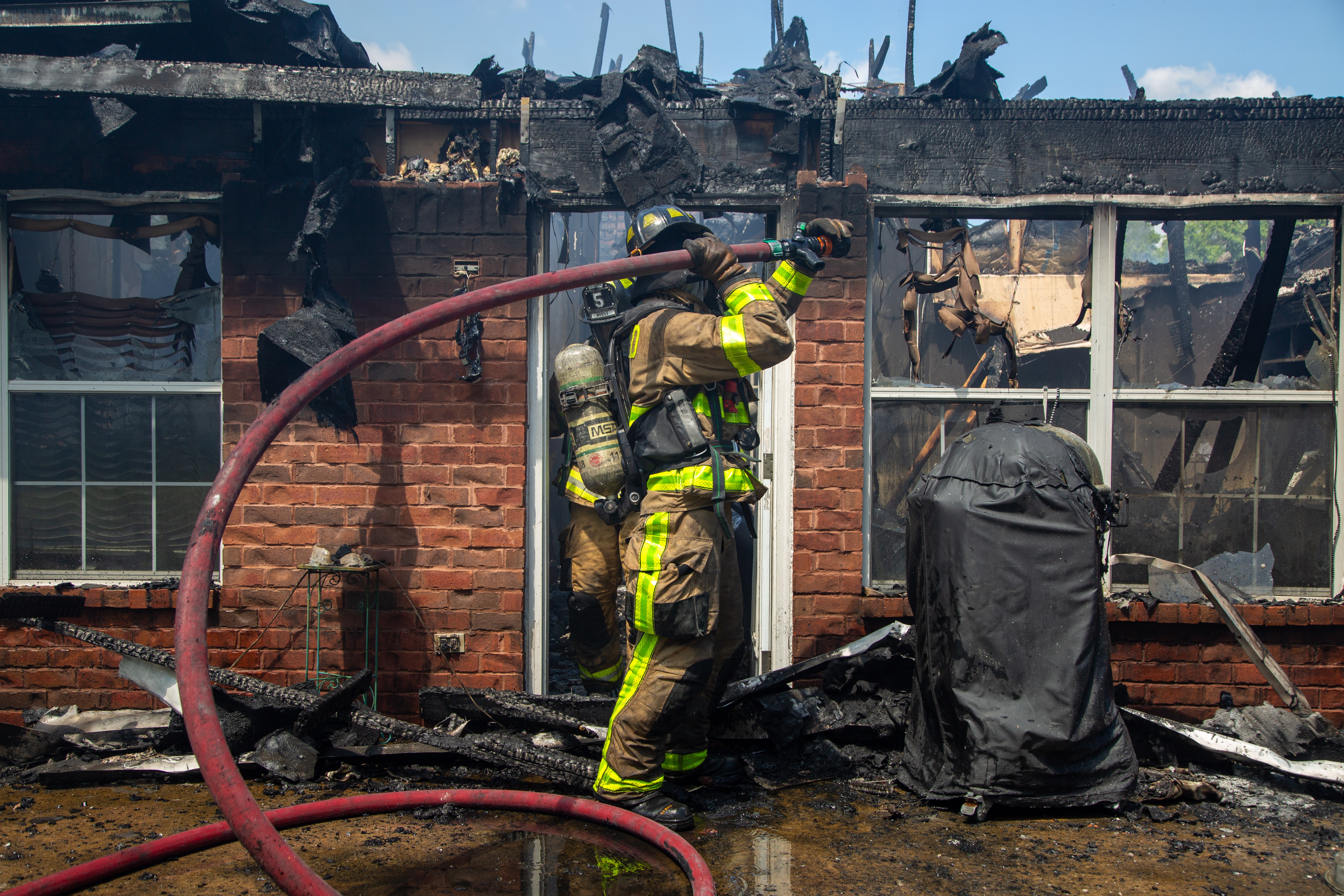 Neighbors Occupants of the home were outside and said no one else was inside. As other units arrived, crews immediately began to put water on the fire and briefly made an interior fire attack until they were ordered into a defensive position where they could fight the fire from the outside. The fire burned through the roof and damaged the whole structure.