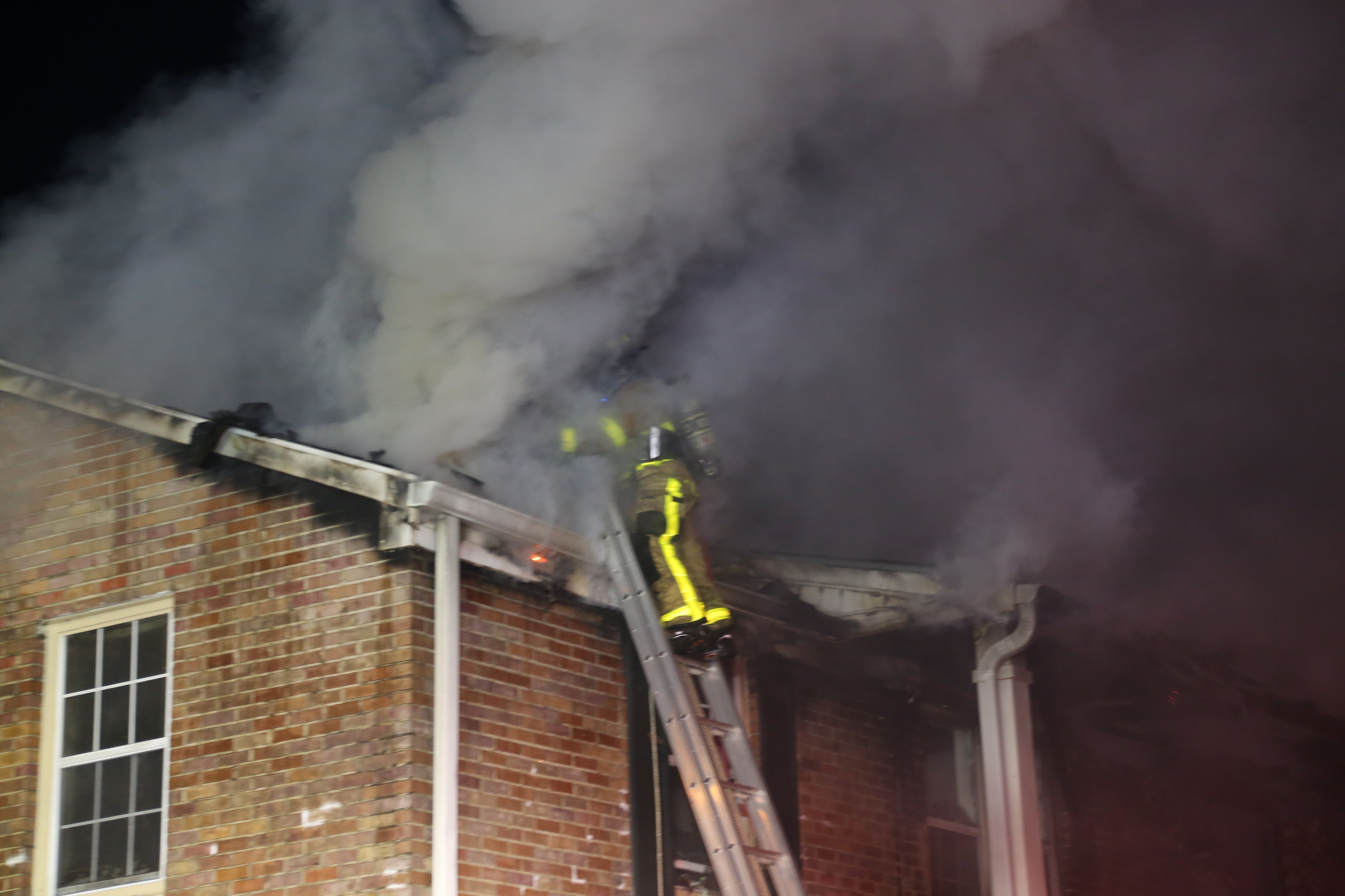 Upon arriving on scene, Engine Co 19 described a 2-story, brick-veneer, apartment residence presenting with thick, black and grey smoke and heavy flames visible from the roof.