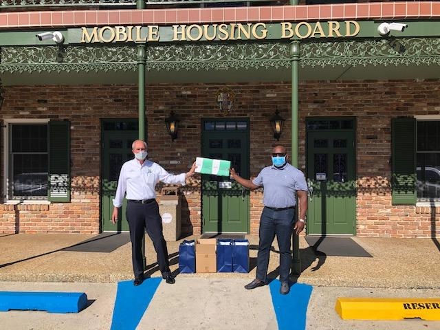 We took those 500 masks and added another 250 from the Mobile Fire-Rescue Department and delivered them to Michael Pierce of the Mobile Housing Authority. The Housing Authority has an urgent need for protective equipment because they are dealing with an outbreak of COVID-19 at Central Plaza Towers.