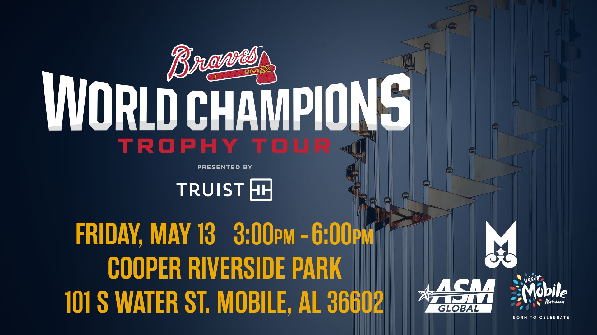 Mobile, Ala. — The Atlanta Braves are stopping in Mobile on May 13 as part of the World Champions Trophy Tour Presented by Truist to celebrate with fans in Southwest Alabama.