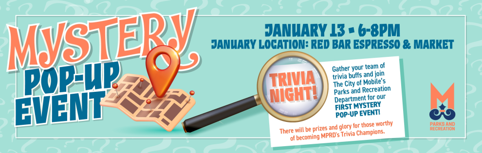The City of Mobile Parks and Recreation Dept is excited to host monthly Mystery Pop-Ups in 2024!