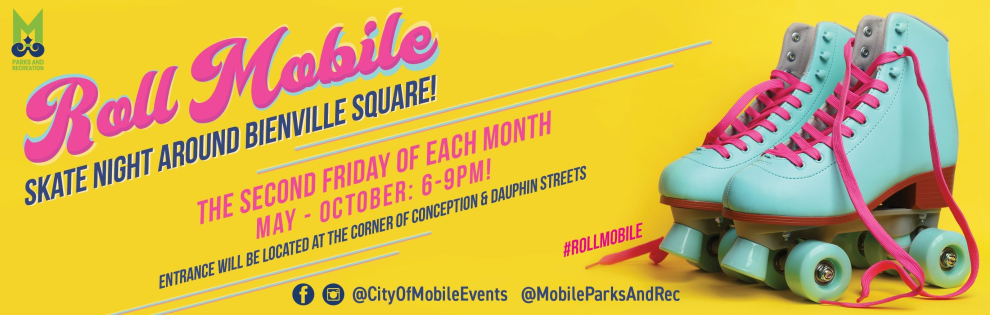 Keep Rollin' Mobile! #MPRD is back with more free skate nights around the Park! Again we are closing off the streets and turning Bienville Square into a giant roller rink! We will have Lights, a Live DJ, and all the Fun! Dust off those skates or buy a new pair and join us every second Friday of the Month in Downtown Mobile starting in May and ending in October! This event is fun for all ages and sure to be a good time whether you are skating or watching from the sides!